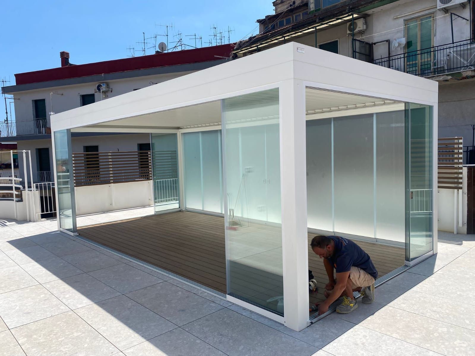 Ideali per balconi, terrazzi, giardini o porticati, possono essere realizzate in diverse configurazioni: chiuse con vetri o pannelli isolanti, scorrevoli o fisse, con sistemi di apertura automatizzati.