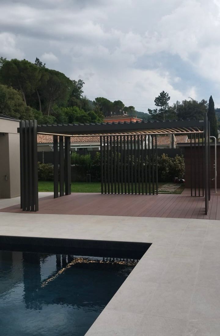 Realizziamo pergolati in ferro o alluminio con coperture in telo retrattile, policarbonato o vetro, ideali per proteggere dal sole, dalla pioggia e dal vento senza rinunciare alla bellezza architettonica.
